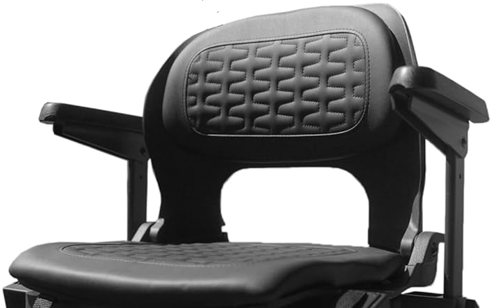 comfortable seating, adjustable armrests, and adjustable tiller.