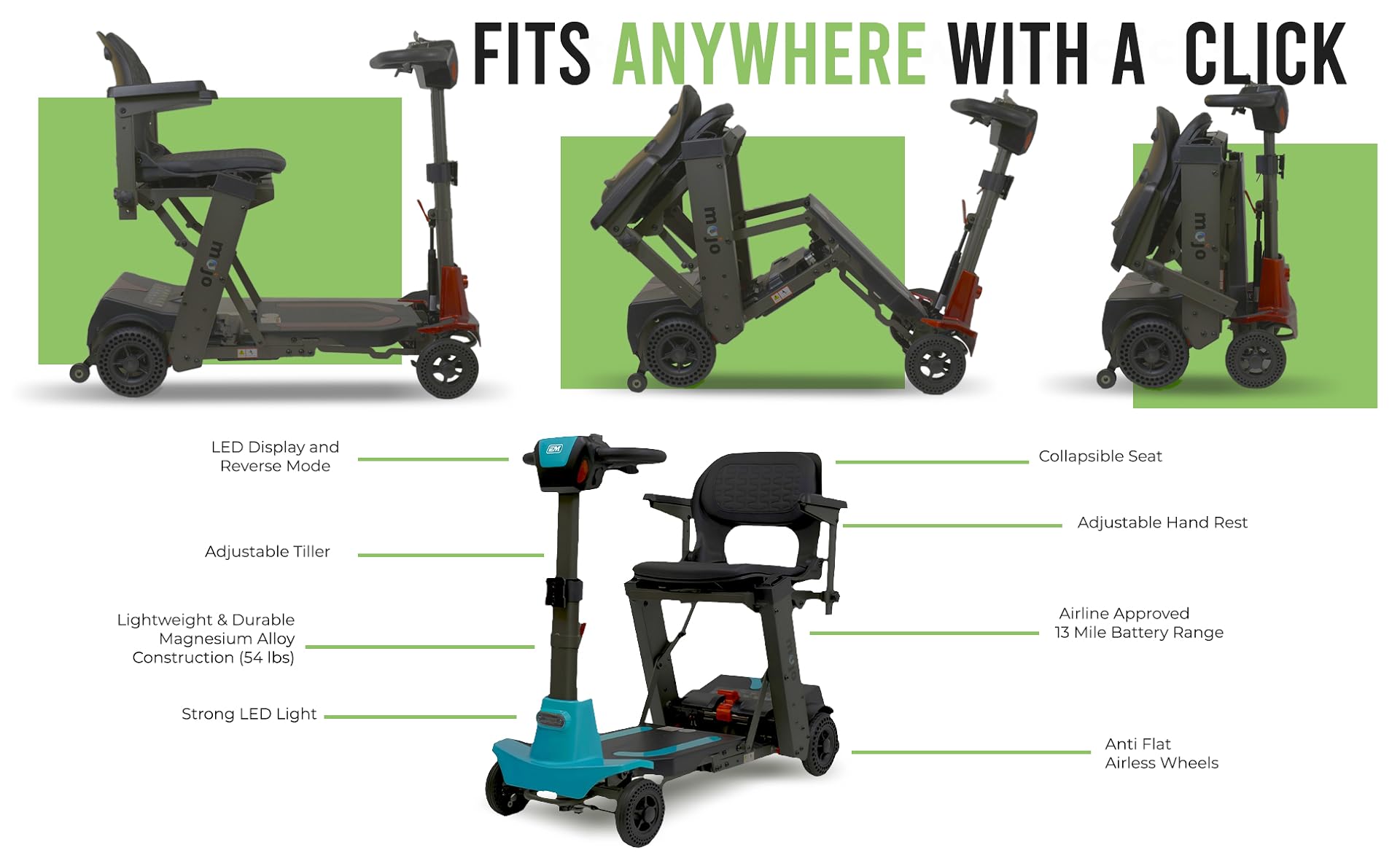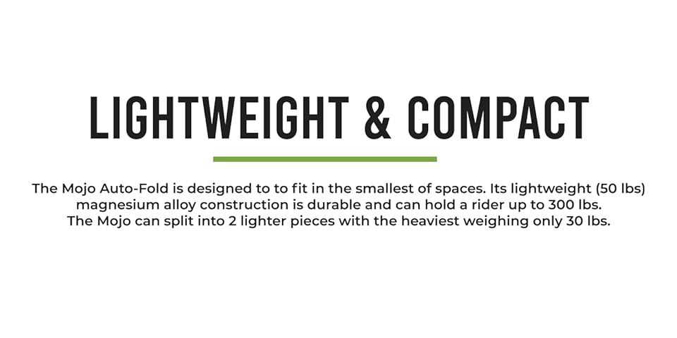 into two for easier handling makes the Mojo the clear choice in folding scooters.